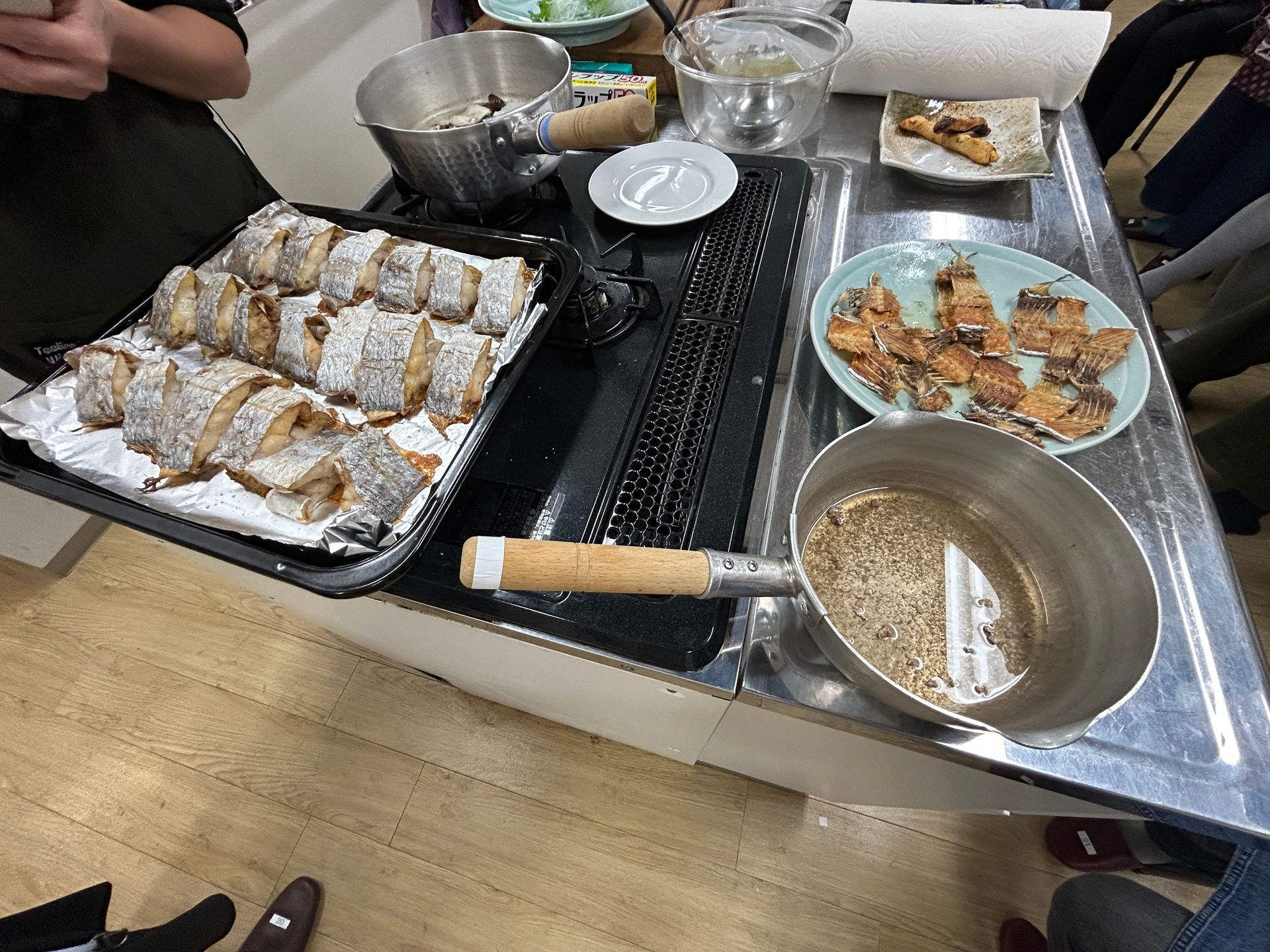 We didn't just learn one or two dishes—we explored the sheer versatility of this silver-skinned fish by creating a spectacular full-course meal. Guided by the experts, we utilized every part of the Tachiuo, from the head to the tail and even the internal organs, transforming them into seven distinct and exquisite dishes: